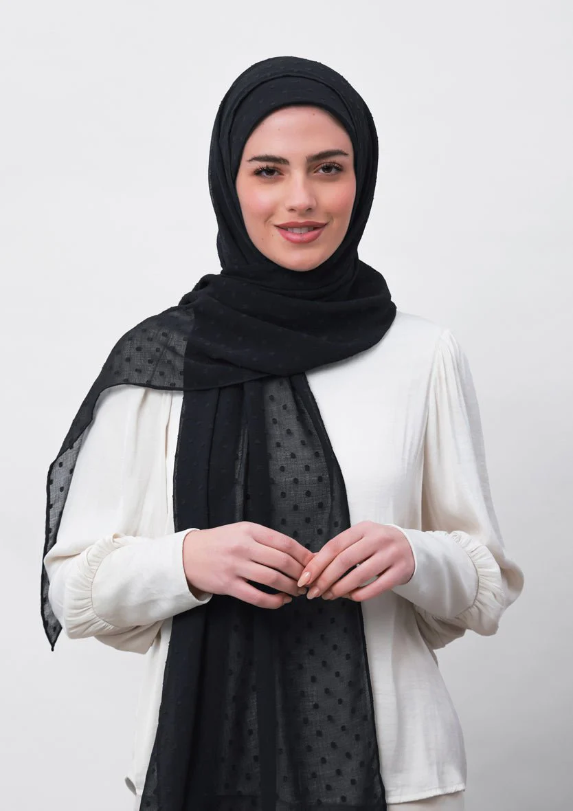 This ready-to-wear designer hijab is made of exclusive lightweight high-quality fabric and lined with 100% cotton voile to ensure breathability and comfort for hijabi women.