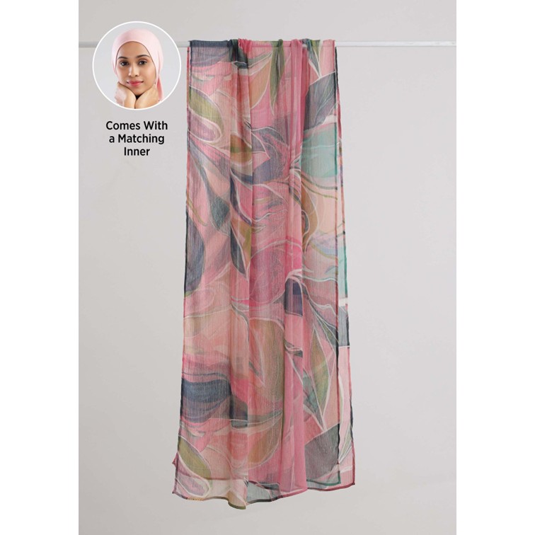 A (180x60cm) classic, rectangular shawl and included 2-in-1 inner that you can style in a variety of ways. Wear it as a hijab, or tie it around your neck like a scarf. Add a colourful touch to your outfit by wearing it loose over the shoulder.